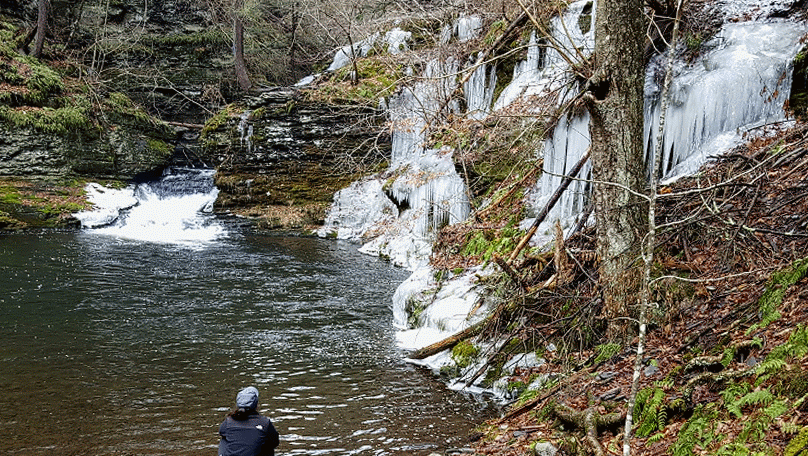IMG_20160120_185922During my research I was a little disappointed that I had not fully gotten to the waterfall. There were several more stream crossings and this would not have been possible for me at the time. Adams Falls is a good 30 foot plunge into a swimming hole below, but according to research swimming is not allowed. I was sad I was not able to see this waterfall, but I was still mesmerized with the frozen beauty I witnessed along the way. I also read that it gets crowded during the summer time so be warned.