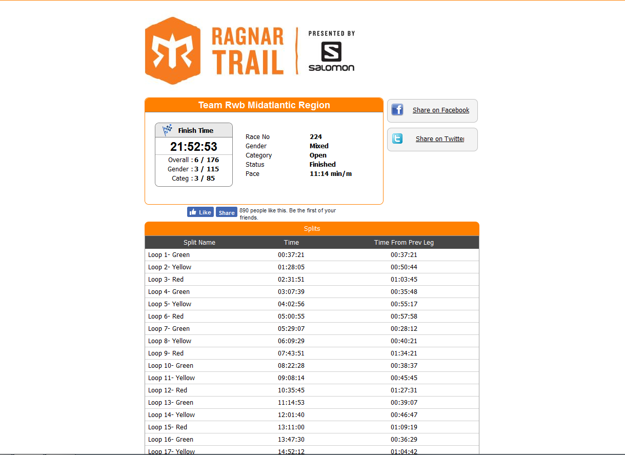 When the rain cleared up, I walked around Ragnar Village and bought myself a nice Appalachians Finisher t-shirt. I attempted to sample a pair a Salomon shoes, but they did not have any in my size so I just stuck with my own pair.