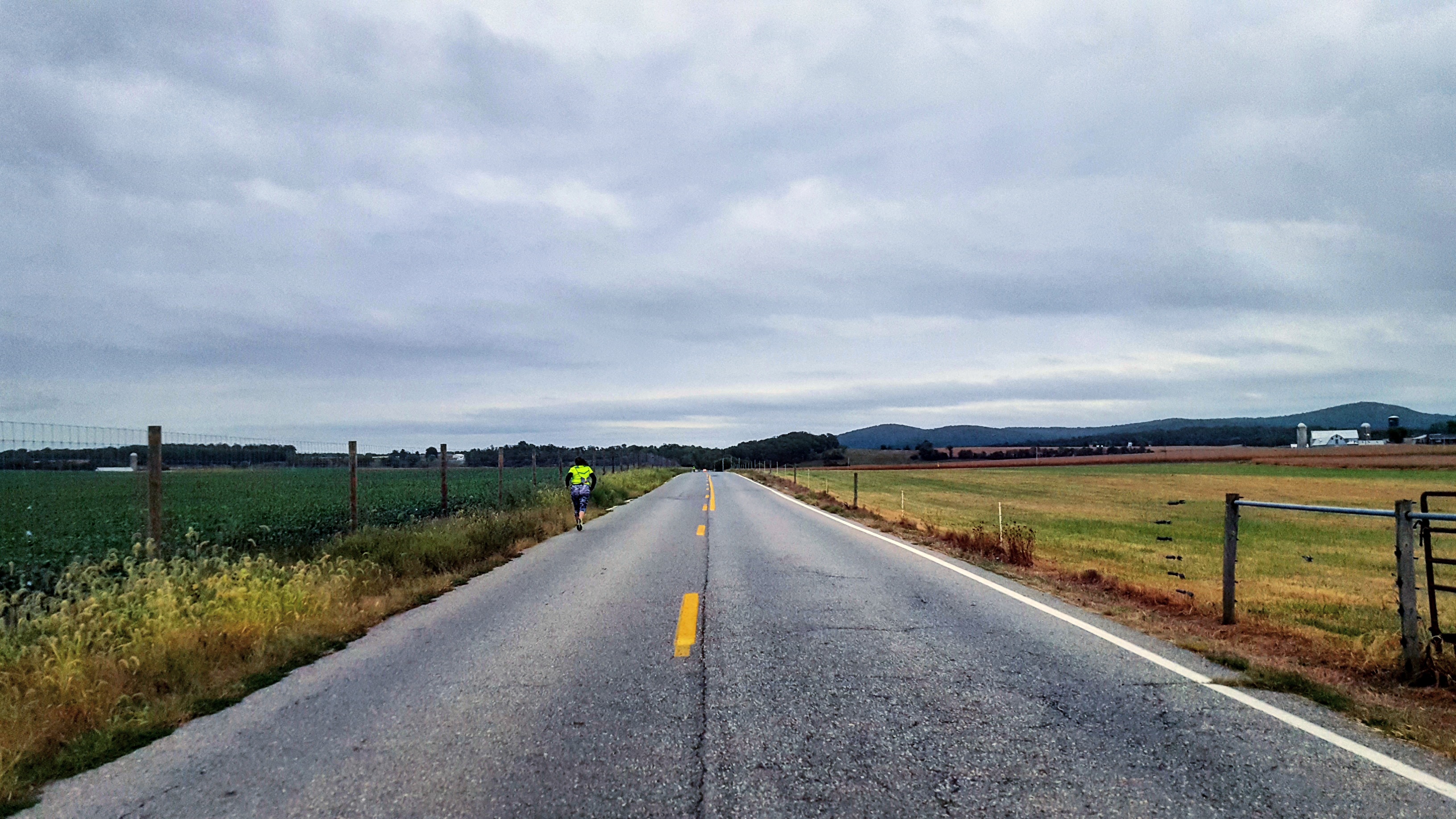 After my run I was quite pooped. I attempted to lay down in the van, but it was very impossible for me to get any rest. We had to keep moving to follow our team. Pictured above is one of my teammates as she ran past somewhere in Maryland. I love capturing road shots like these!