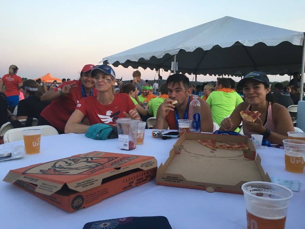 Post race pizza never tasted so good! My body was dying for calories after the 24+ miles of running!