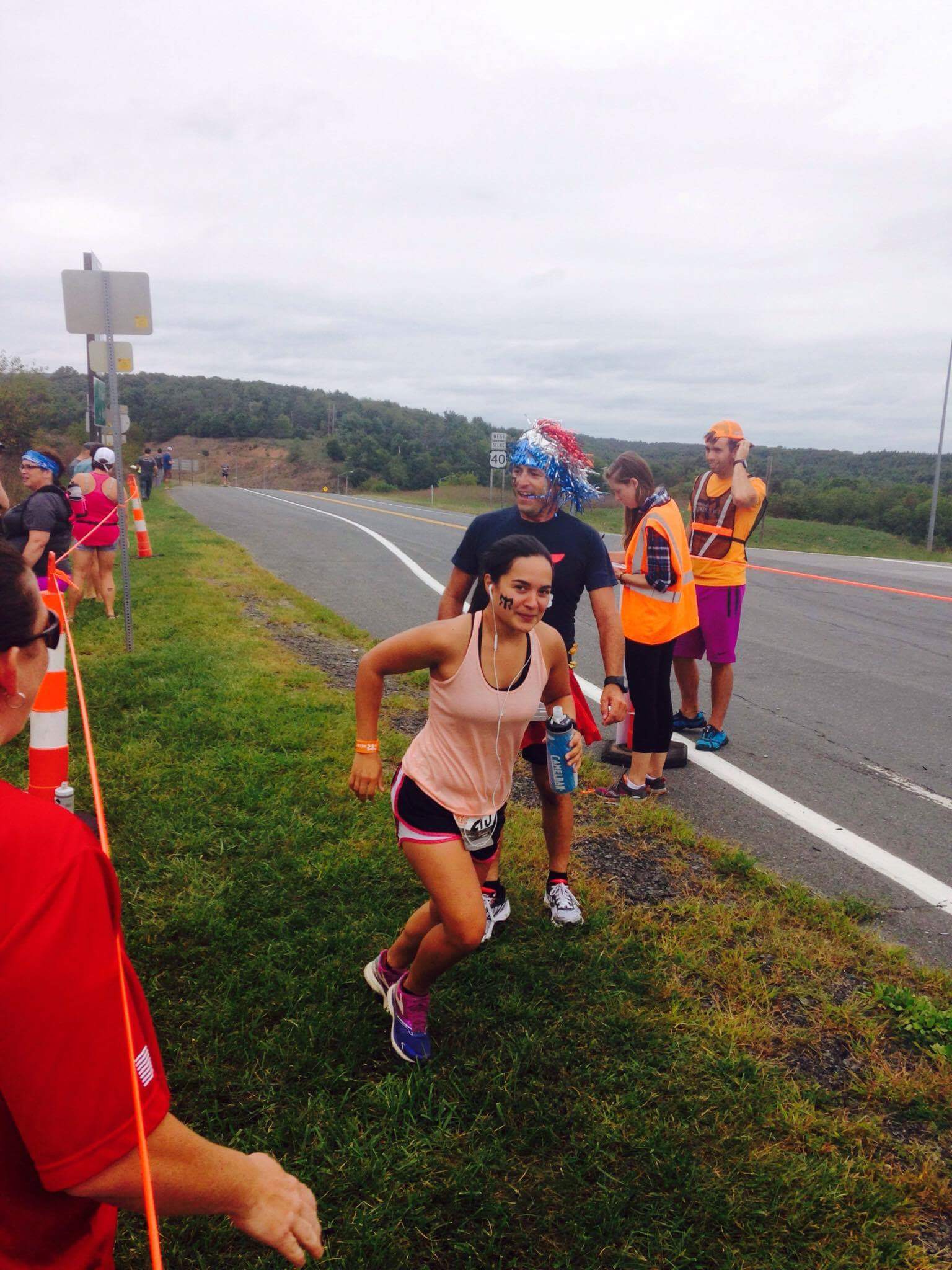 I was too excited to finally start my leg and I’m glad someone was able to capture the moment for me! I am not use to running with water so I took my water bottle with me to be safe since I had no van support. That hill was a bit of a struggle and boy did my calves feel tight! My body was not use to running straight up a steep mountain road and my calves were screaming at me! I had to stop a few times to stretch them out and loosen them up. Once I finally arrived to the top it was nothing but smooth sailing from there! I took advantage of gravity and sped down that mountain and passed so many people! It was quite the adrenaline rush!