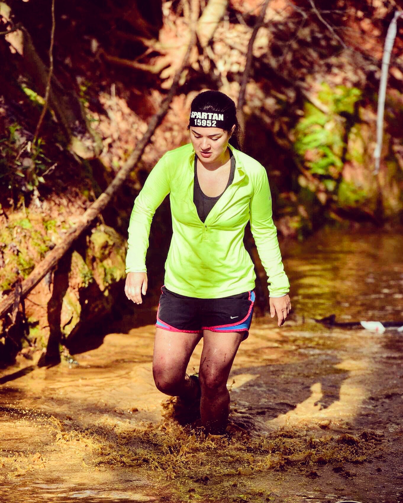 I normally don’t like running Spartan Races in long sleeves, but it was very cold that morning at around 34 degrees so I put on a jacket to keep from freezing. I dreaded getting into the cold, muddy water, but it thankfully warmed up throughout the day.